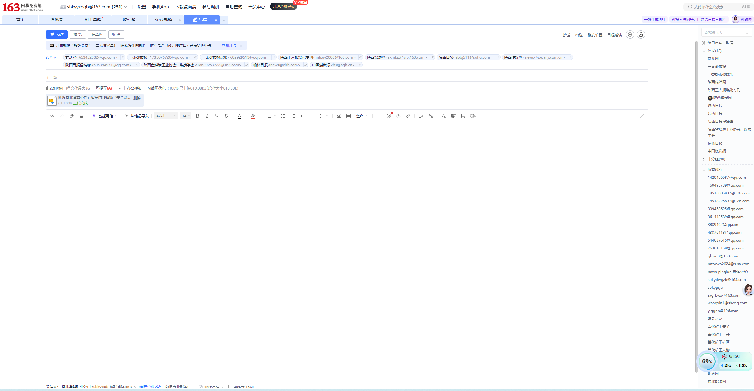 用涌鑫的邮箱Sbkyyxdqb@163.com给榆林日报等12家外发单位投 |