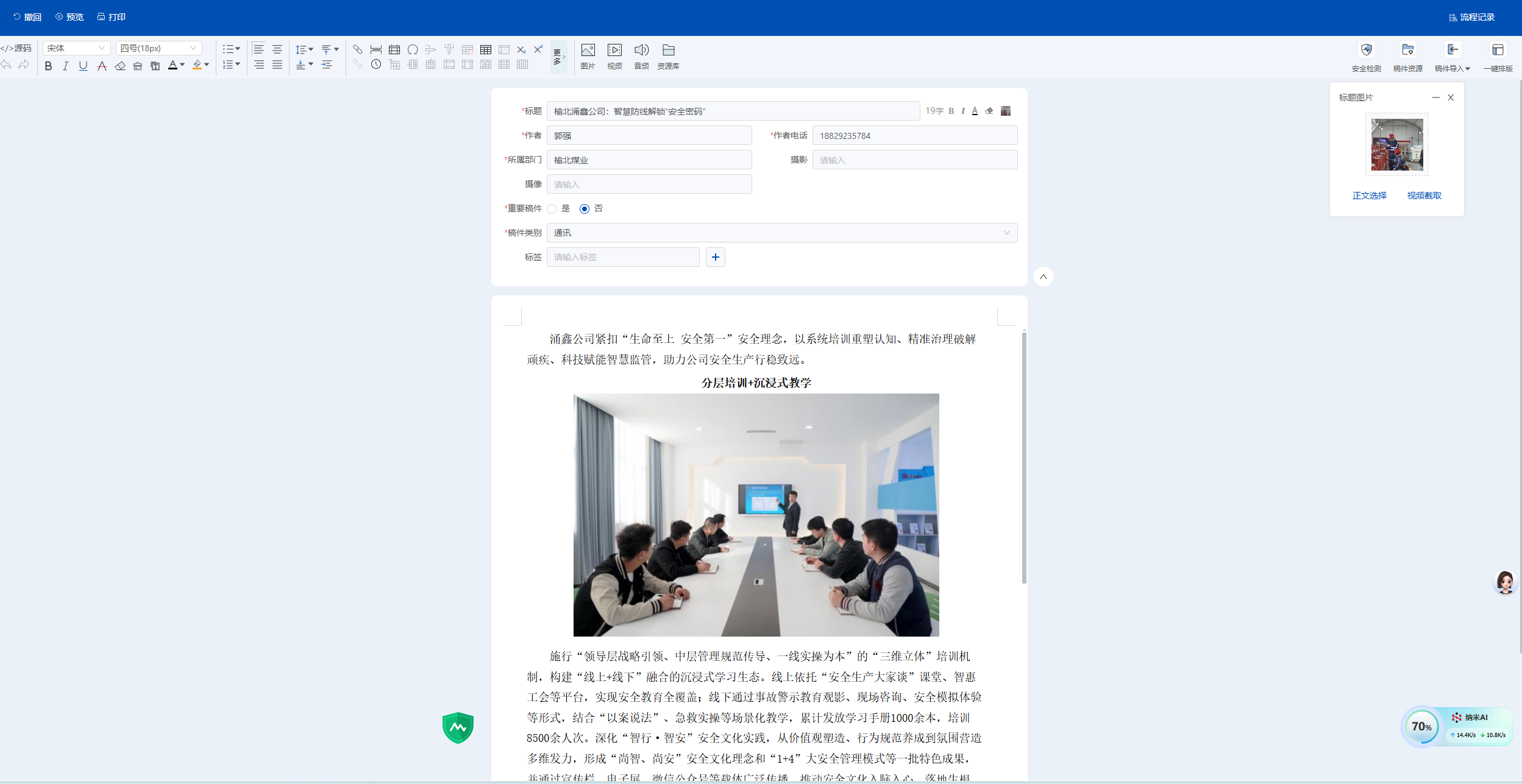 | 涌鑫公司沙梁煤矿通讯员自行投稿说明 | ||||